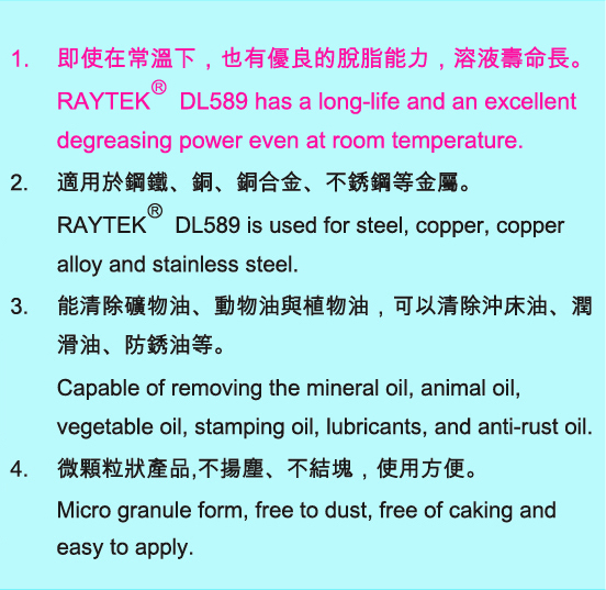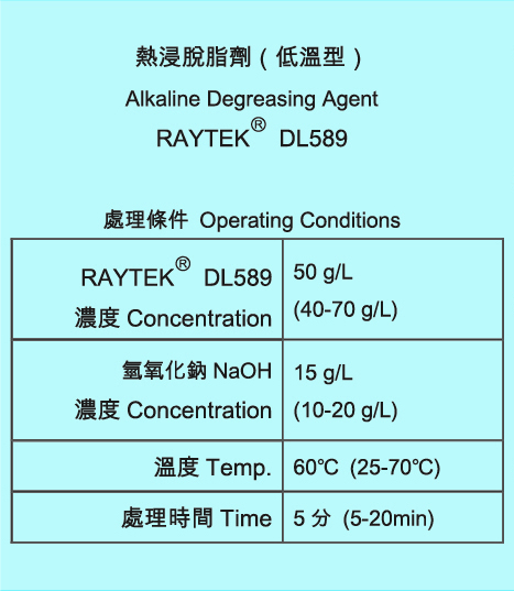 Alkaline Degreasing Agent (suitable for Room Temp. operating) RAYTEK® DL589