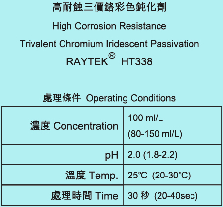 High Corrosion Resistance Trivalent Chromium Iridescent Passivation RAYTEKⓇ HT338
