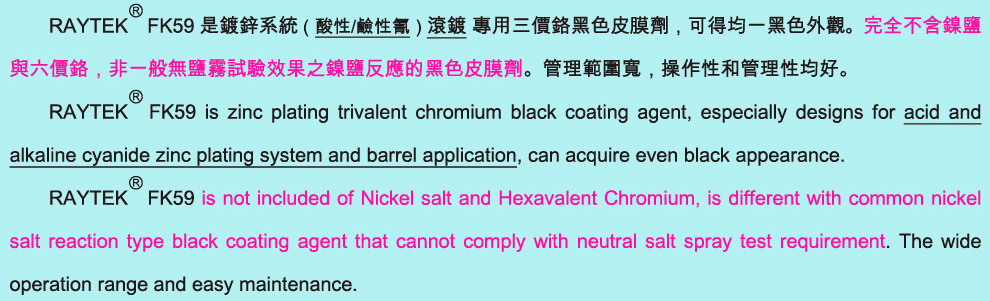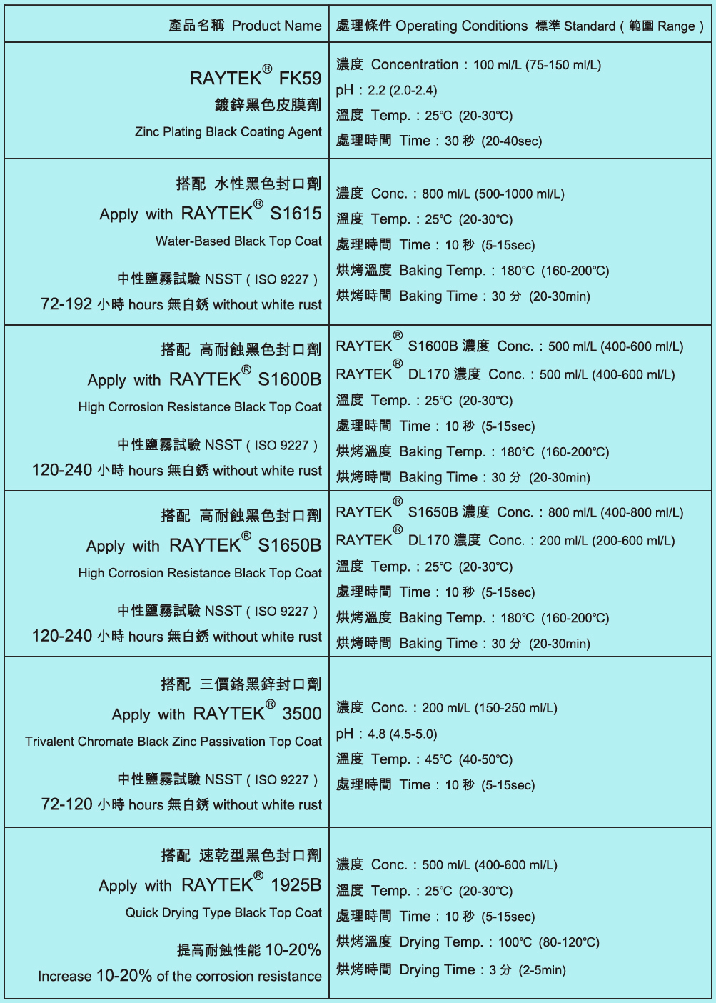 Zinc Plating Black Coating Process RAYTEKⓇ FK59