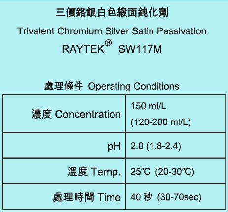 Trivalent Chromium Silver Satin Passivation RAYTEKⓇ SW117M