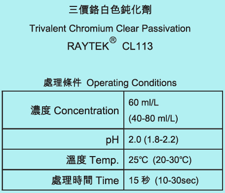 Trivalent Chromium Clear Passivation RAYTEKⓇ CL113