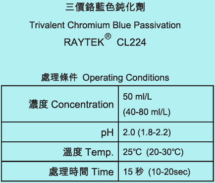 Trivalent Chromium Blue Passivation RAYTEKⓇ CL224