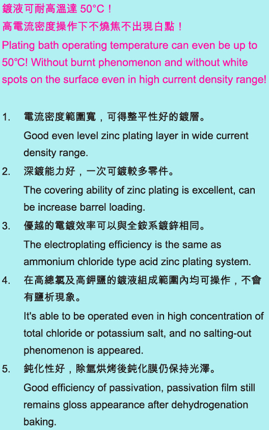 Plating bath operating temperature can even be up to 50℃! Without burnt phenomenon and without white spots on the surface even in high current density range!