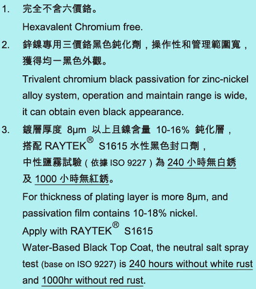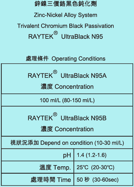 Zinc-Nickel Alloy System Trivalent Chromium Black Passivation RAYTEKⓇ UltraBlack N95