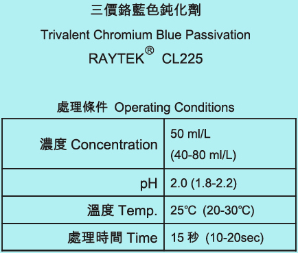 Trivalent Chromium Blue Passivation RAYTEKⓇ CL225