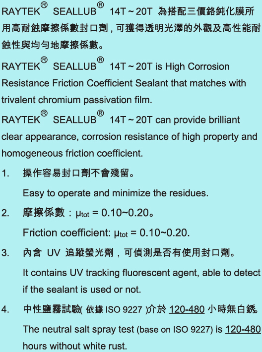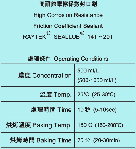 High Corrosion Resistance Friction Coefficient Sealant RAYTEKⓇ SEALLUBⓇ 14T~20T