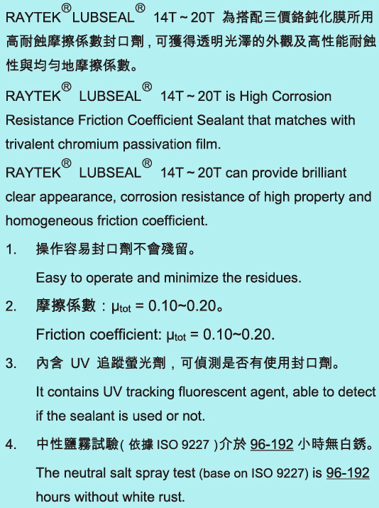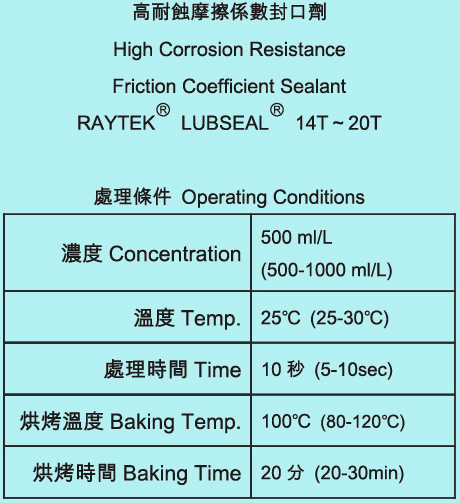High Corrosion Resistance Friction Coefficient Sealant RAYTEKⓇ LUBSEALⓇ 14T~20T