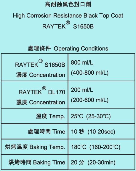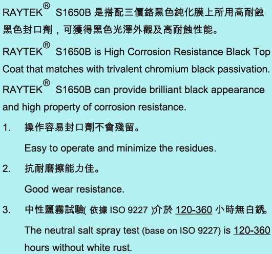 High Corrosion Resistance Black Top Coat RAYTEKⓇ S1650B