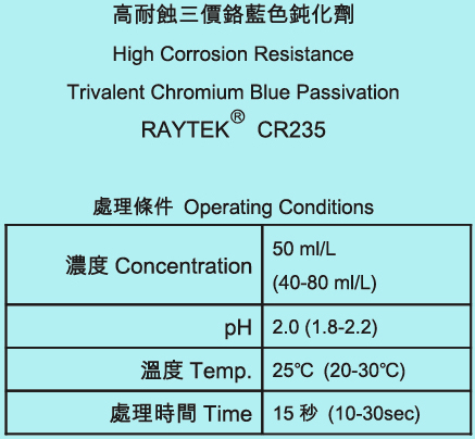 High Corrosion Resistance Trivalent Chromium Blue Passivation RAYTEKⓇ CR235