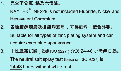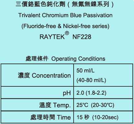 三價鉻藍色鈍化劑(無氟無鎳系列) RAYTEKⓇ NF228