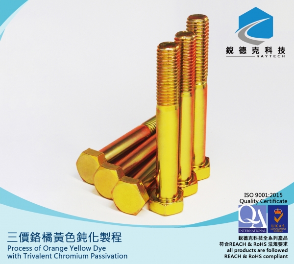 • 三價鉻橘黃色鈍化製程 RAYTEKⓇ CR275 + RAYTEKⓇ TY435 + RAYTEKⓇ S1600