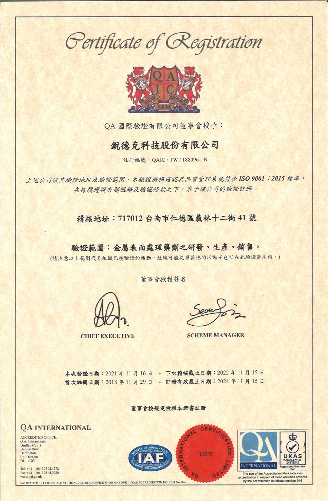 再次榮獲ISO 9001:2015的品質認證,品質保證!