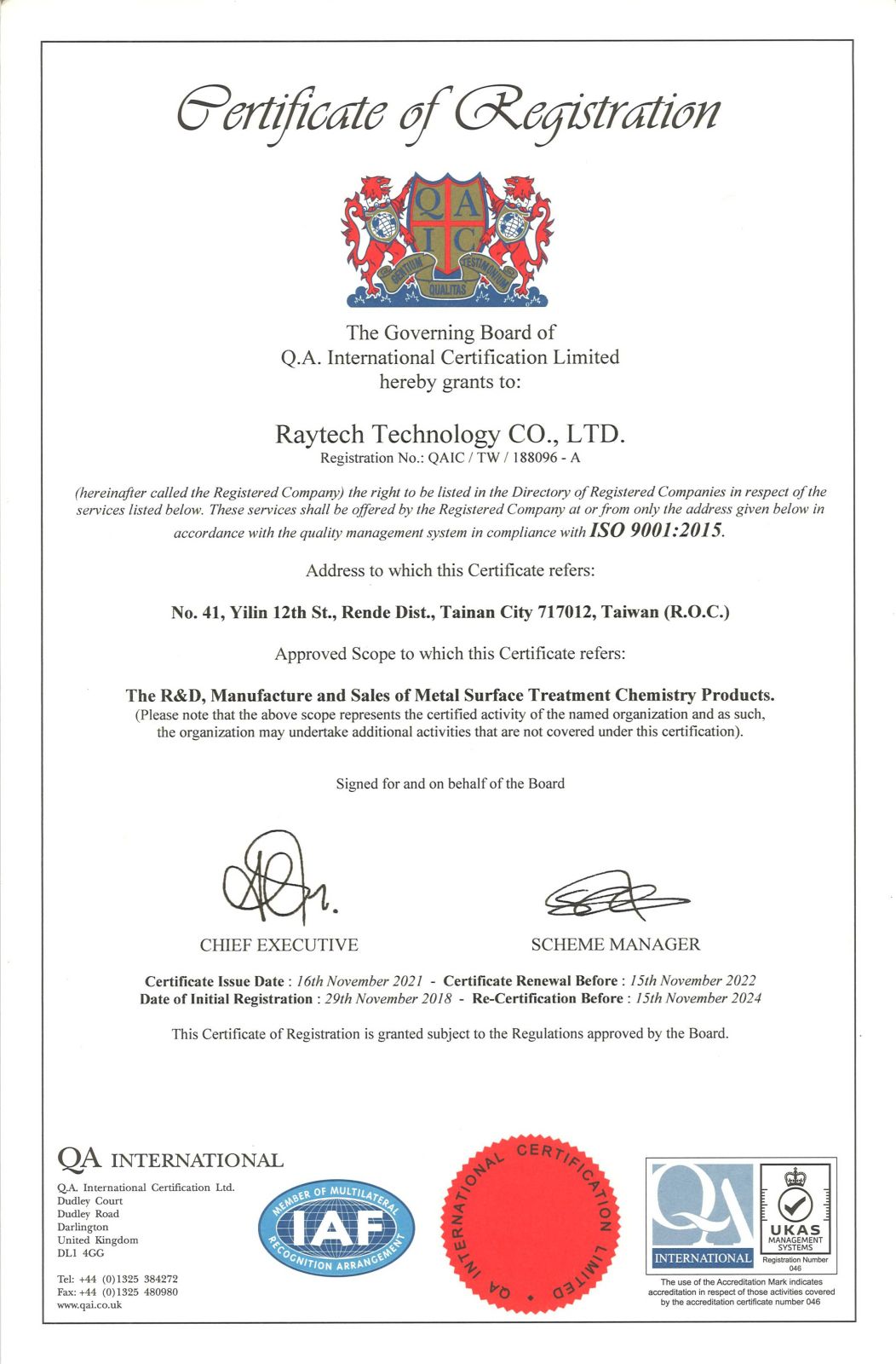 Have the honor to get the quality certification of ISO 9001:2015 again, product quality reliable!