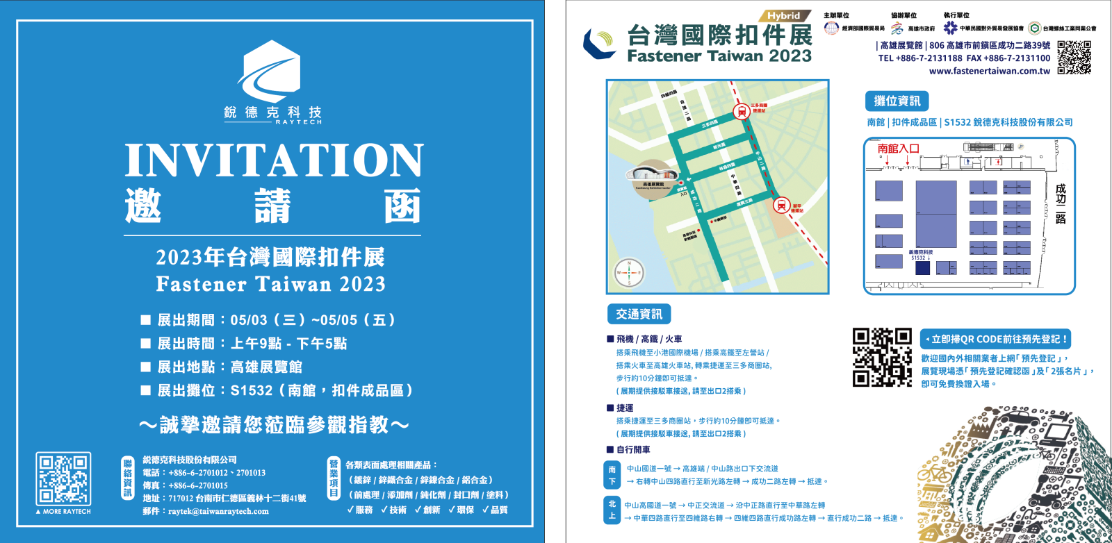 Welcome to make visit our booth at Fastener Taiwan 2023 on May 3rd-5th